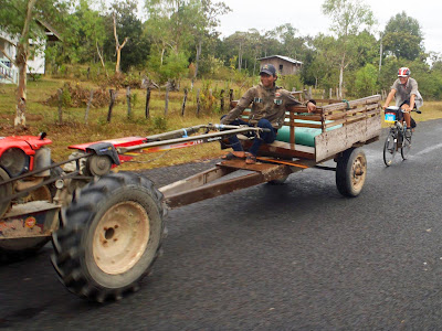 | no, he's not drafting... he's about to overtake. These farm vehicles are used by many as the principal means of transport including taking kids to school... |